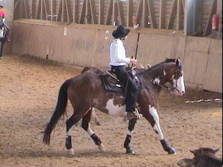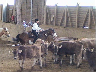 hier noch ein paar Bilder von einem Playday Mai 2003 - ich hatte an dem Wochenende mit Charlie einen Rinderkurs mit anschliesendem Playday und da an dem Tag ein Pferd ausfiel , zerrte ich die dicke , voellig untrainierte Mama mit dem 1 1/2 Monate alten Fohlen von der Weide , fuhr hin , Fohlen in eine Box , Sattel rauf und Pretty machte souveraen ihren Job und durfte dann wieder zurueck ! Das nenne ich Westernpferd !!!!