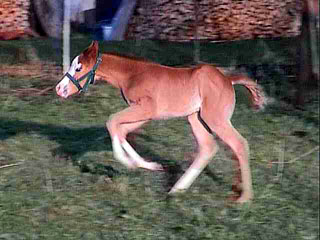 Wie man sieht , hat sie keine Lust auf Farbe , schauen wir mal , ob es unser Cats Lads Last Magic schafft... ! ...............Auch er hatte keine Chance ! Fuchshengst am 16. 4 . 04.......und Stuti 2005 !!!