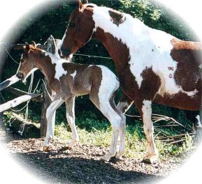letzte Aktualisierung 2/2007 UNSER ERSTES FOHLEN IST EINE STUTE "MARIE LOU FANCY FACE" BROWN / OVERO VOM MÄRZ 1999 . VATER : MASKEDS LAST BOY BAY/ TOBIANO MUTTER: PRETTY NICKLE BAY/OVERO Fohlenschausiegerin Haldenwang PHCG 1999 ! IHRE ABSTAMMUNG KÖNNT IHR HIER NACHSCHAUEN