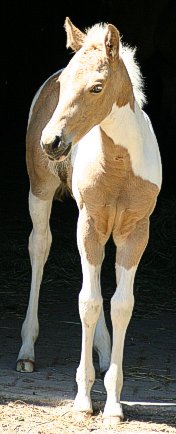 | Stutfohlen palomino/tobiano 1.Mai 2007 - 88 % Foundationblut Sire: MHAFreckle Tari APHA Dam: Peppy Ginger Dry AQHA zum grossen Pedigree update :2.11. 2007